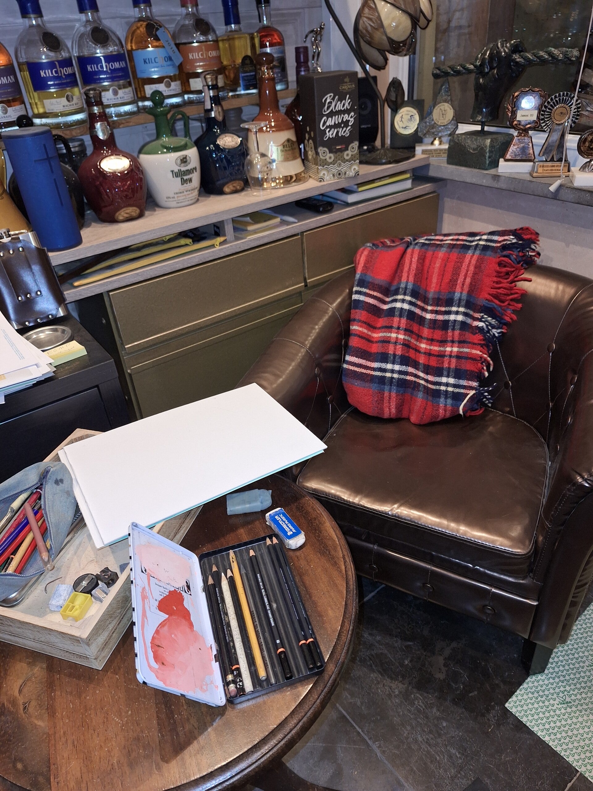 Mijn hoekje waar ik over het algemeen mijn tekeningen/voorbereidingen/schetsen maak