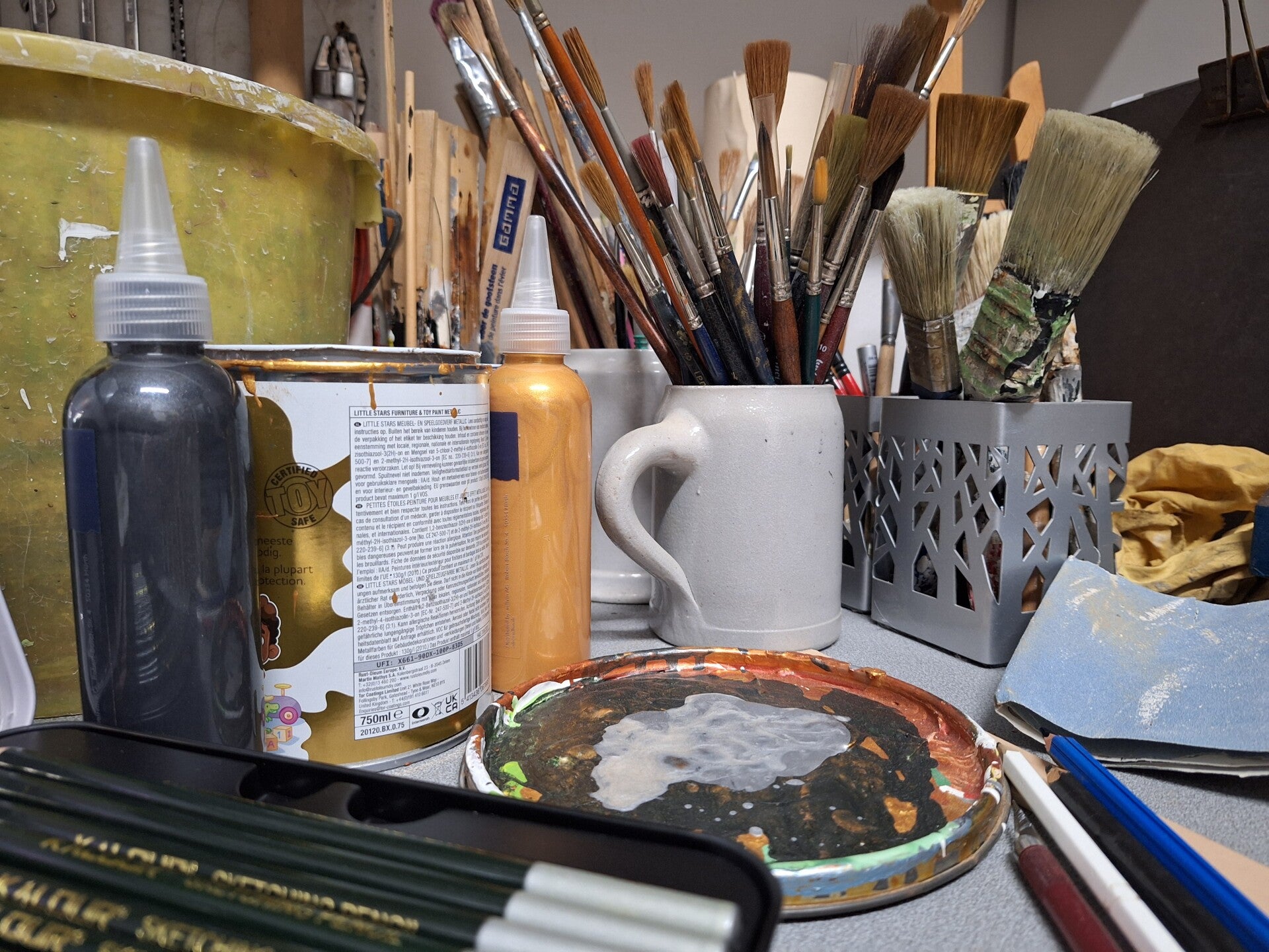 Mijn carrière als letterzetter en publiciteitsdecorateur, samen met mijn ervaring in airbrush en het decoreren van wagens, gevels, panelen en foorkramen, beïnvloedt mijn werk nog elke dag. Deze diverse achtergrond heeft mijn vaardigheden aangescherpt en me een uniek perspectief gegeven op kunst en creatie.